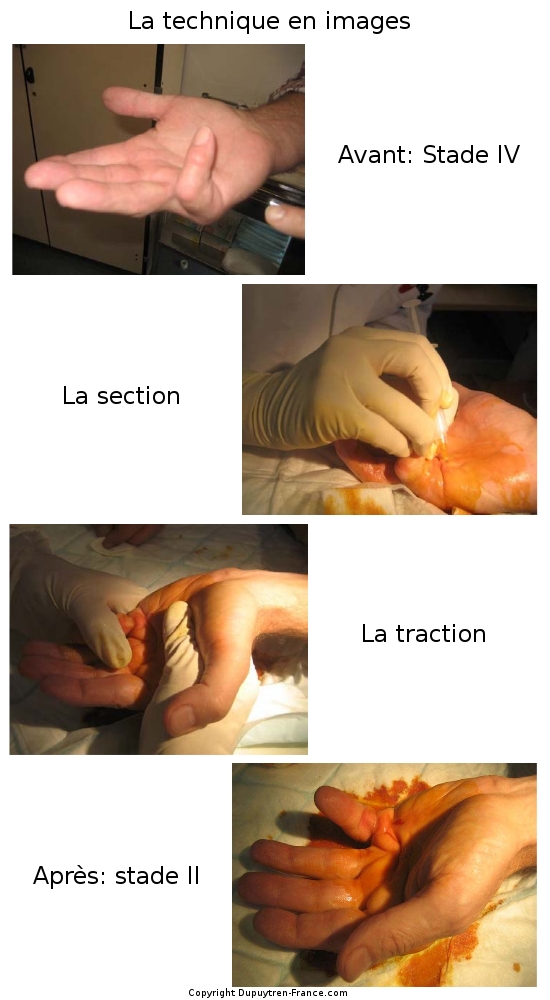L’aponévrotomie à l’aiguille a été proposée, il y a une vingtaine d’années par les rhumatologues de l’Hôpital Lariboisière à Paris sous l’impulsion du Dr J.L. Lermusiaux. Ce devrait être aujourd’hui le traitement de première intention de la maladie de Dupuytren